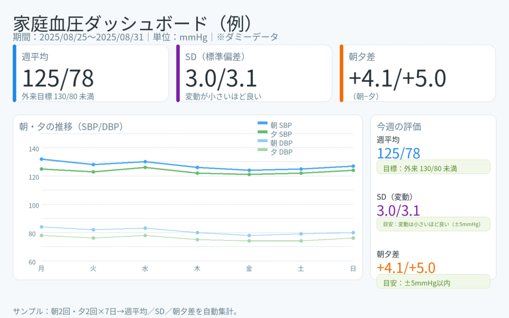 WellTakaの視点:KPIは「家庭・朝の週平均」。そこに変動性(SD)と朝夕差を足して管理すると、再現性の高い改善が狙えます。